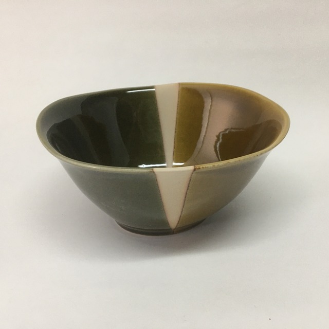 民芸の塗り分け技法をカジュアルモダンスタイルで表現したシリーズです。二色の釉薬を丁寧に塗り分け、間を空けることで生地の質感を残しました。三色が柔らかい表情をおりなしています。 泥状の粘土を石膏型に流し込んで固める圧力鋳込みで成型しています。技術力が高いとされる瀬戸の石膏型を使っています。 小さめのどんぶりです。 17.2×16.3×7.8 電子レンジ、食器洗浄機 ○