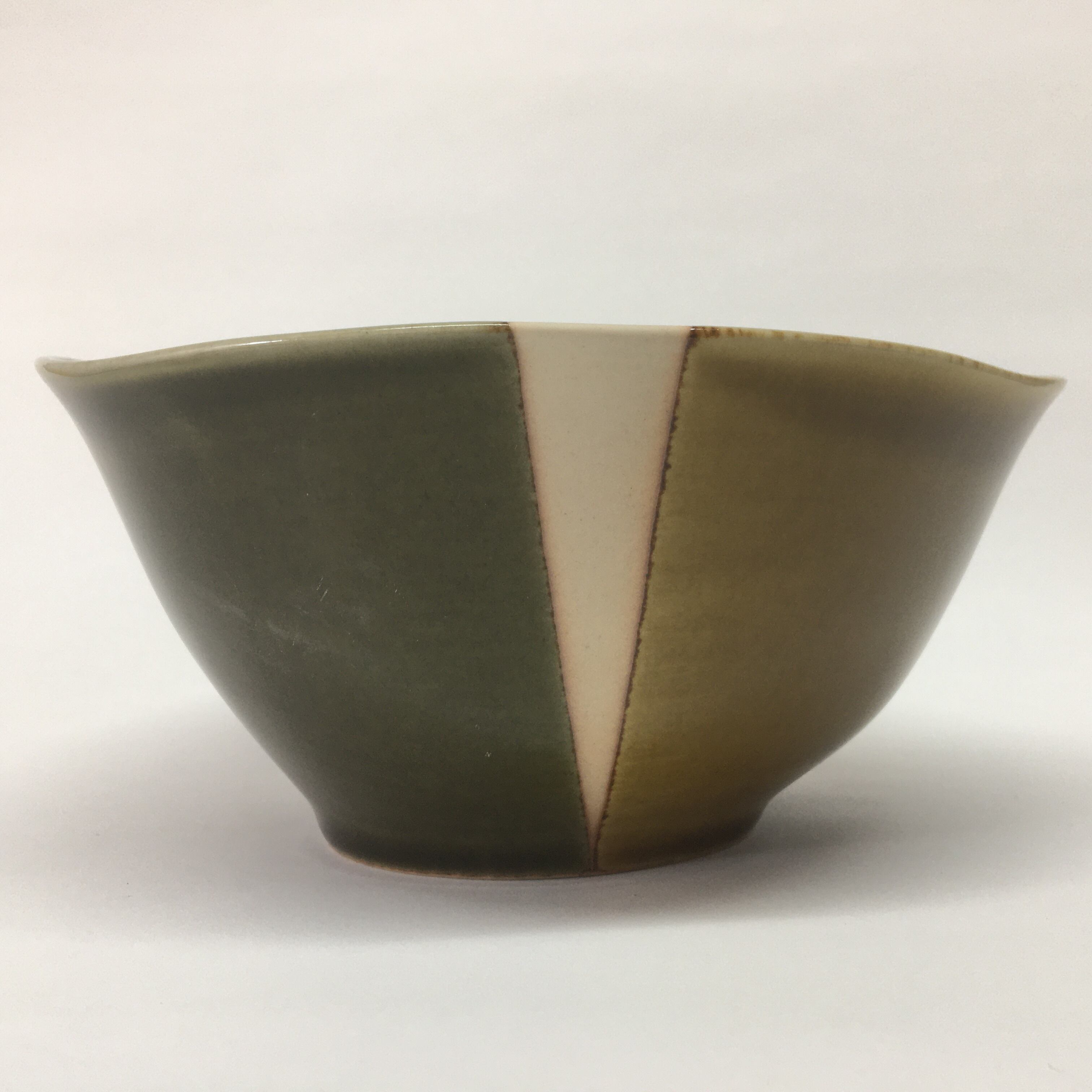 民芸の塗り分け技法をカジュアルモダンスタイルで表現したシリーズです。二色の釉薬を丁寧に塗り分け、間を空けることで生地の質感を残しました。三色が柔らかい表情をおりなしています。